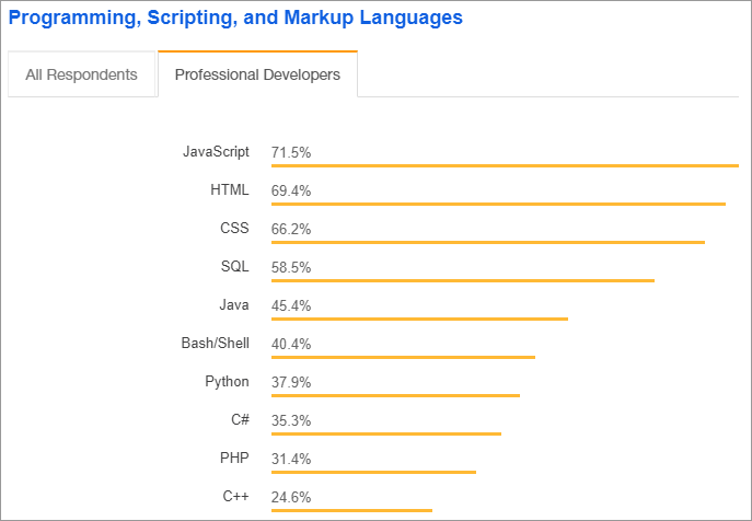 E segundo o Stack Overflow, maior site do mundo de perguntas e respostas de programação, o Java aparece no top 5 como uma das linguagens mais populares em 2018: