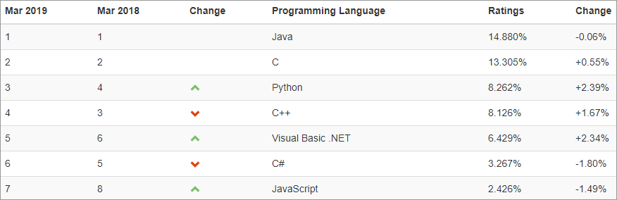 Segundo o ranking da Tiobe, o Java continua líder de mercado. Comparativo do último ano: